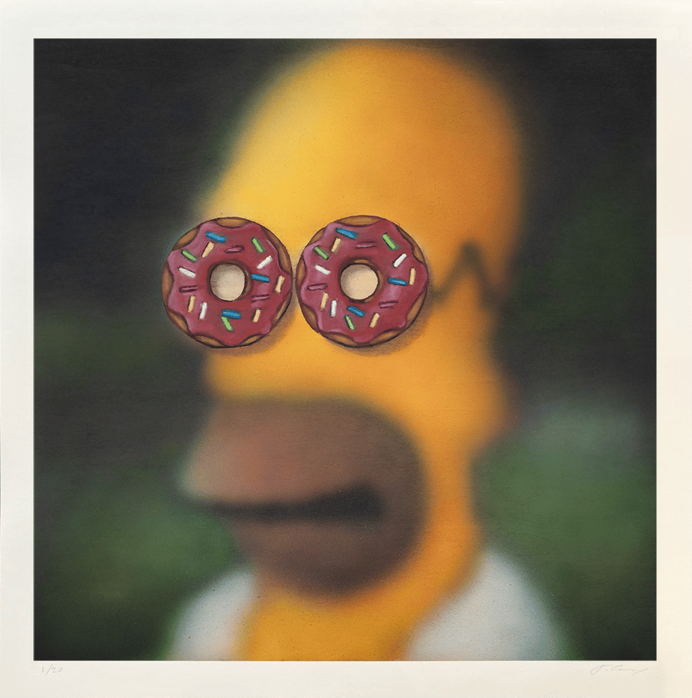 Framing details: Float mounted with black open grain frame with bespoke hand painted fillets to match the icing and sprinkes on the donuts.